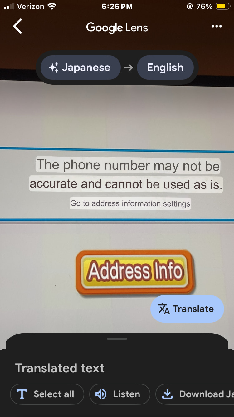 Japanese error with Address Info button in Food Channel Standard Ordering