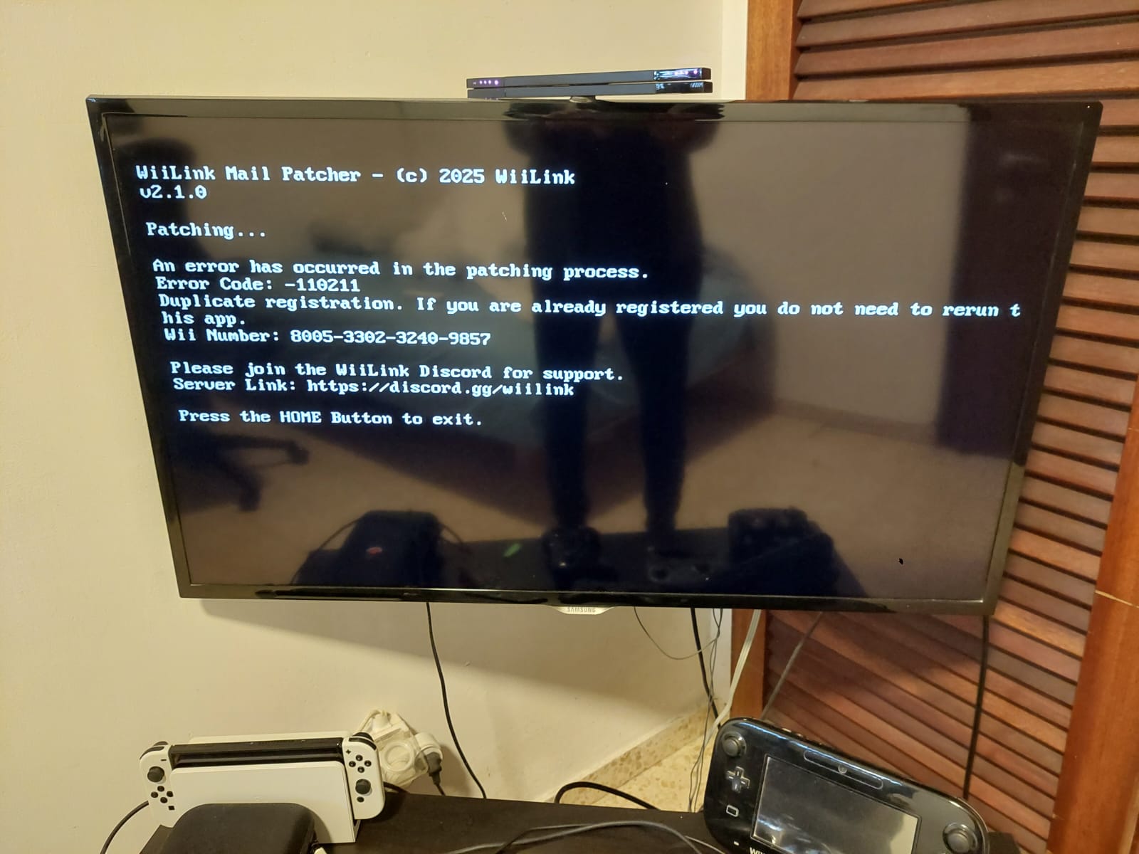 I’ve just deleted your Wii Number from the database; if you try again now it should patch successfully!
